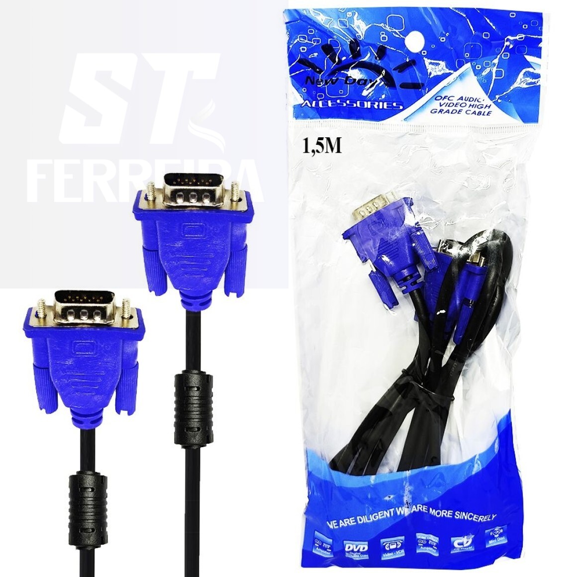 *CABO PARA TRANSMISSÃO DE IMAGEM, COMPATÍVEL COM MONITORES, PROJETORES E APARELHOS QUE TENHAM ENTRADA VGA;